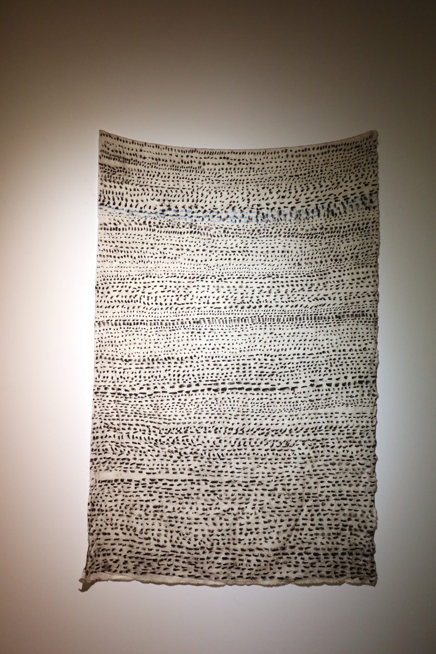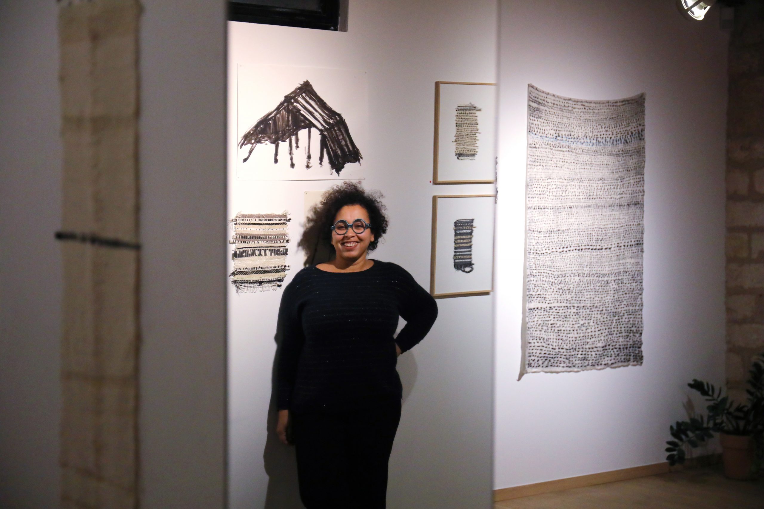 Vue d’exposition, Sanaa Mejjadi, Sans titre T13, 2021, tissage et acrylique, photo Céline Escolano.
